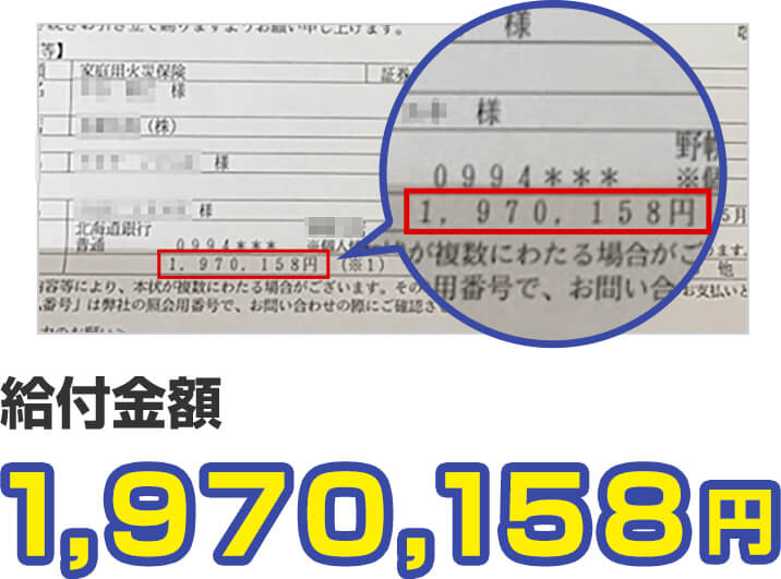 100万円以上の高額の保険金を受け取った方も多数いらっしゃいます。受け取った保険金の使途は自由です。
